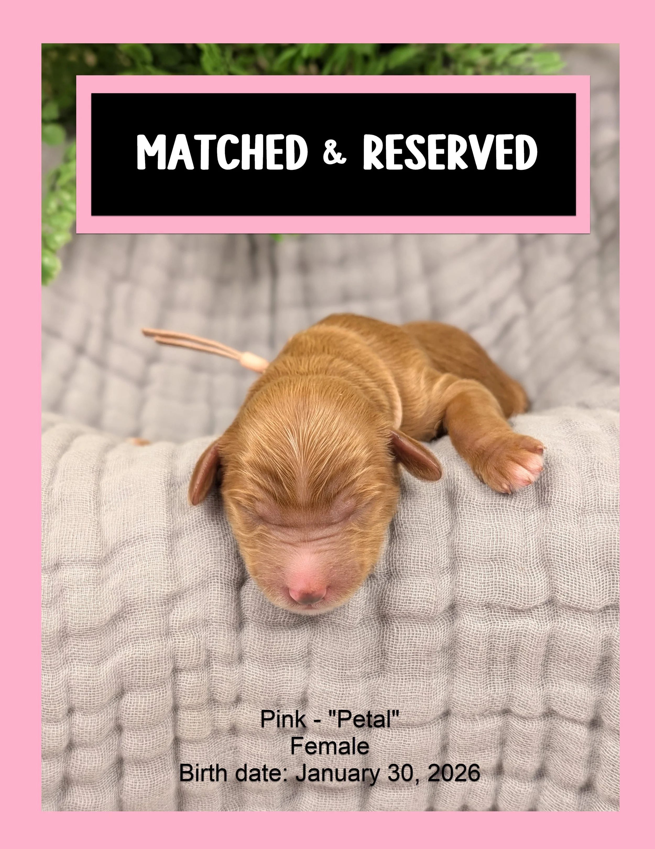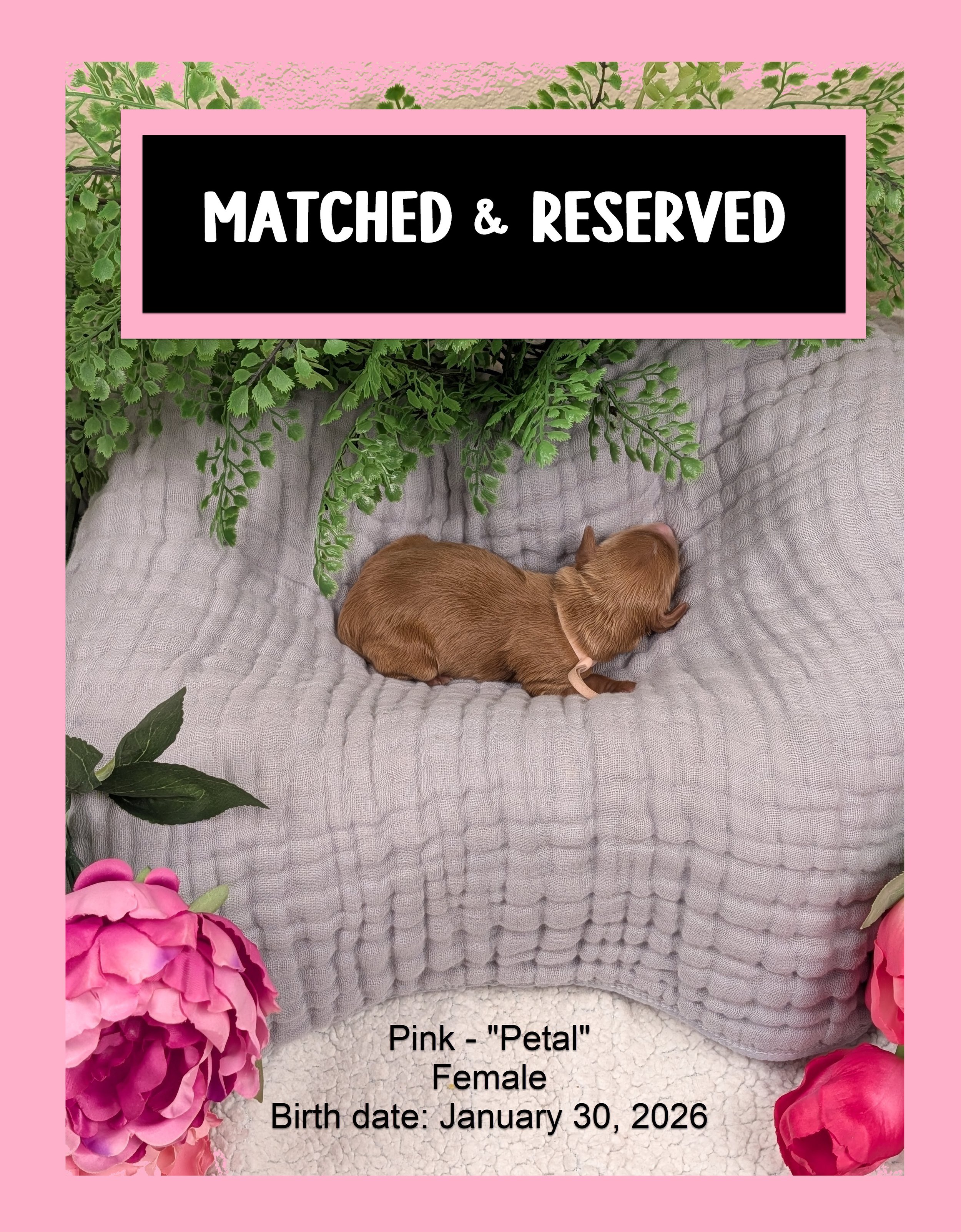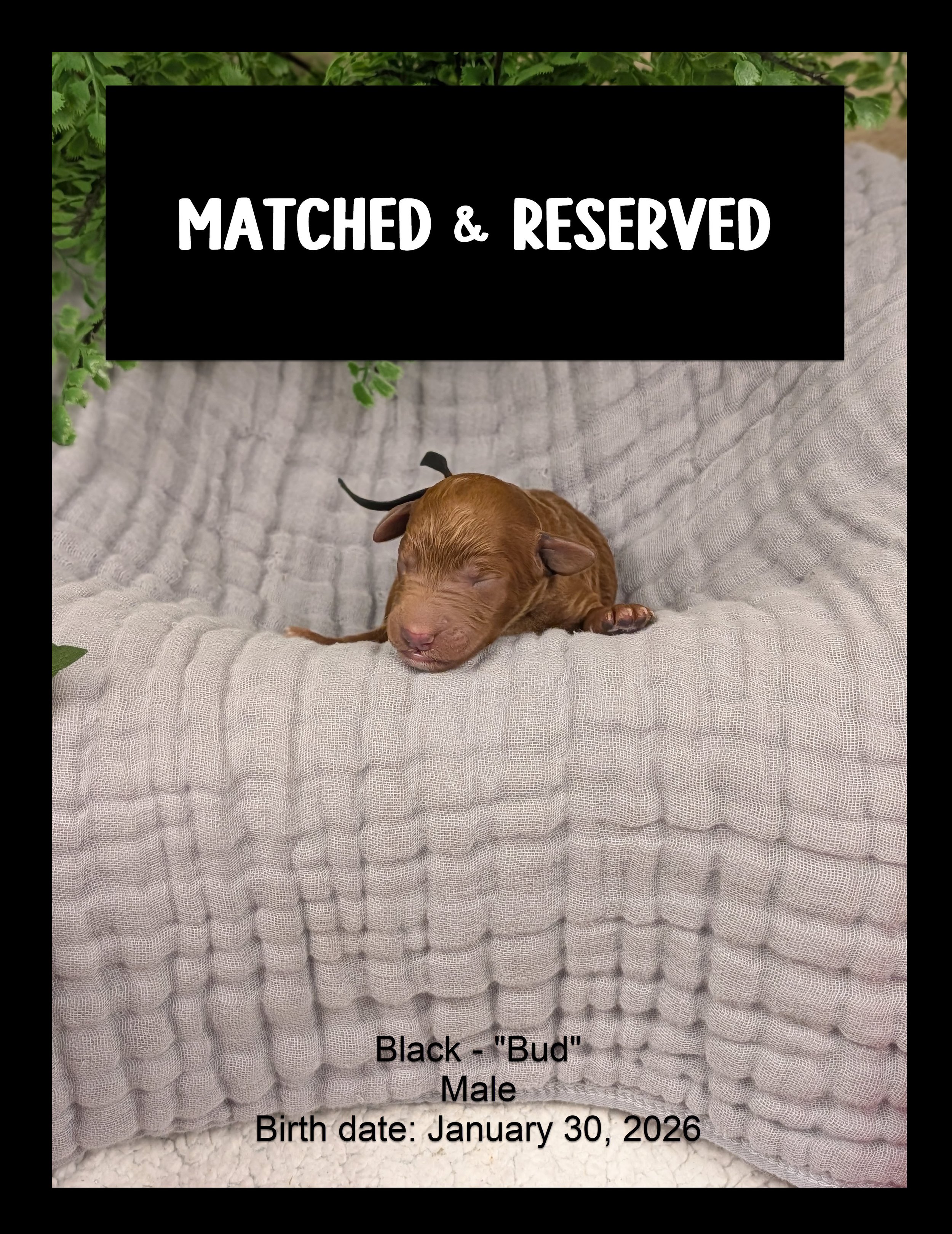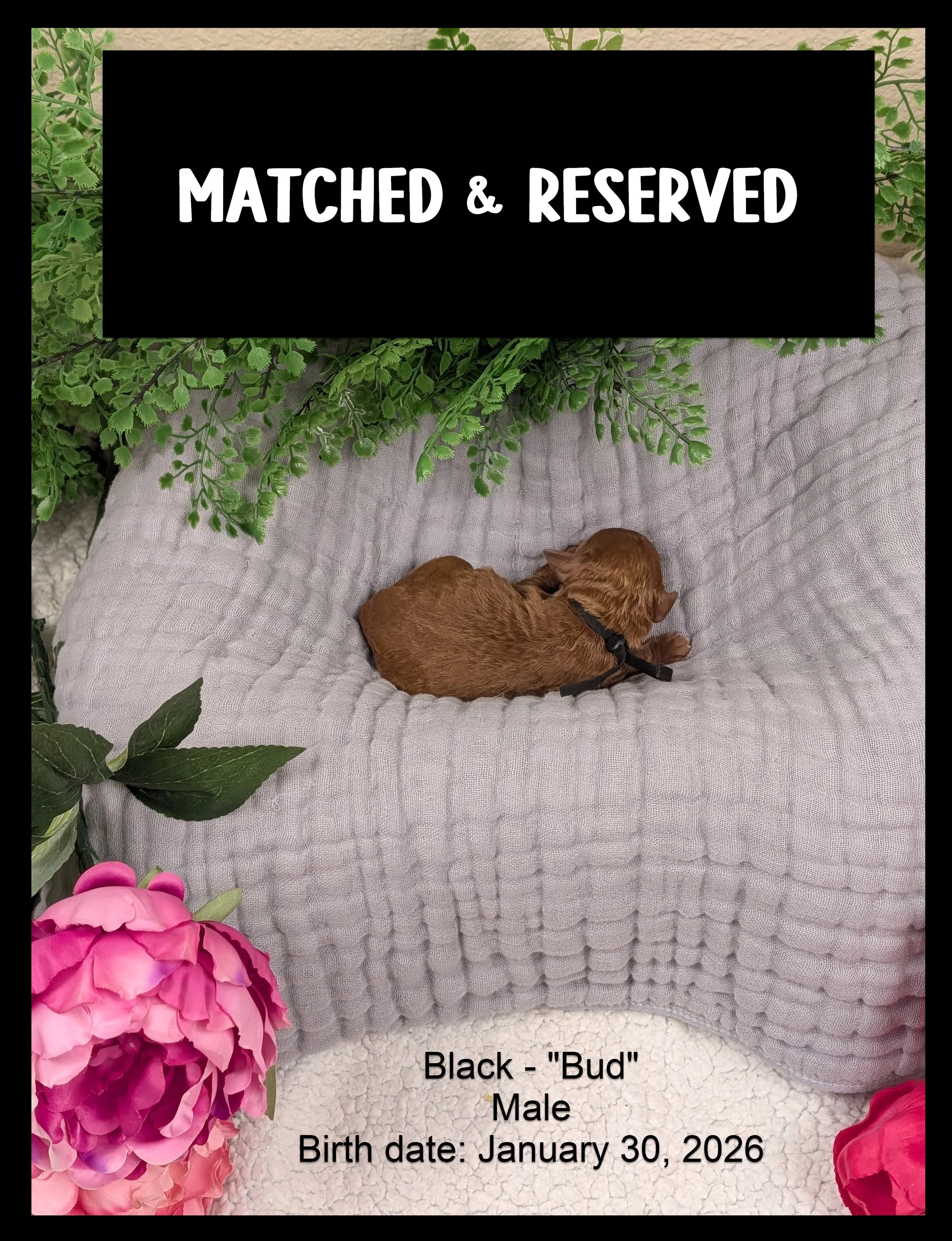 🌱 Bud (MATCHED & RESERVED): The smallest of the litter, but definitely the one with the cutest personality!