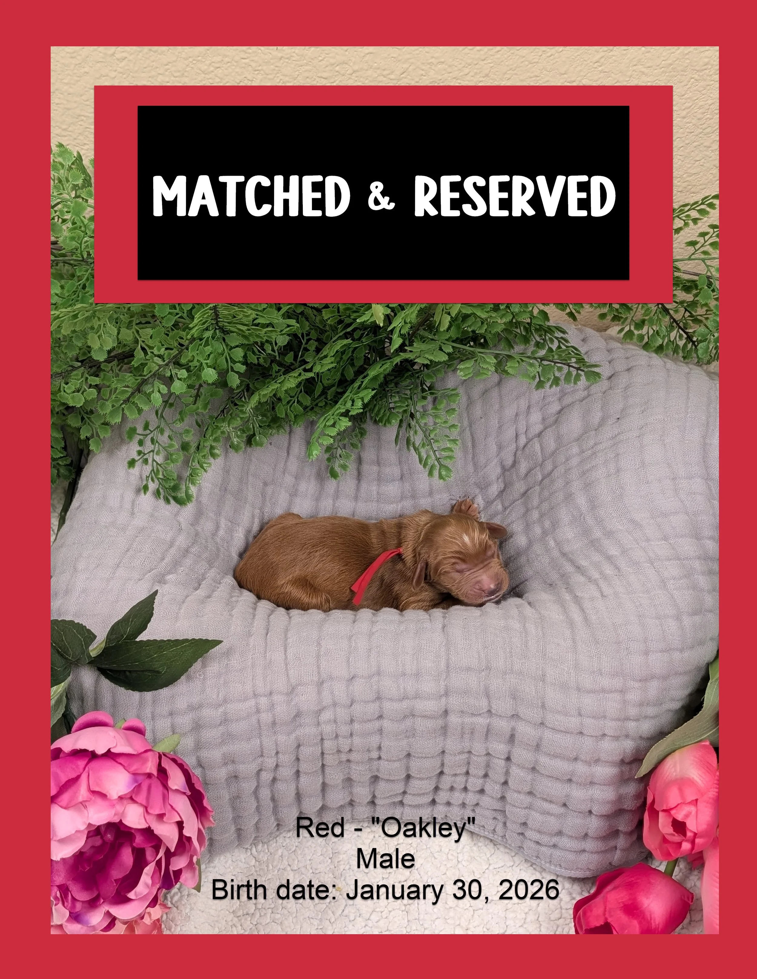 A $500 deposit is required to reserve your spot on our waitlist. This deposit is fully applied to your final adoption fee, meaning it is not an extra cost—it is simply your first step toward bringing your puppy home! Deposits are non-refundable to ensure serious inquiries only.