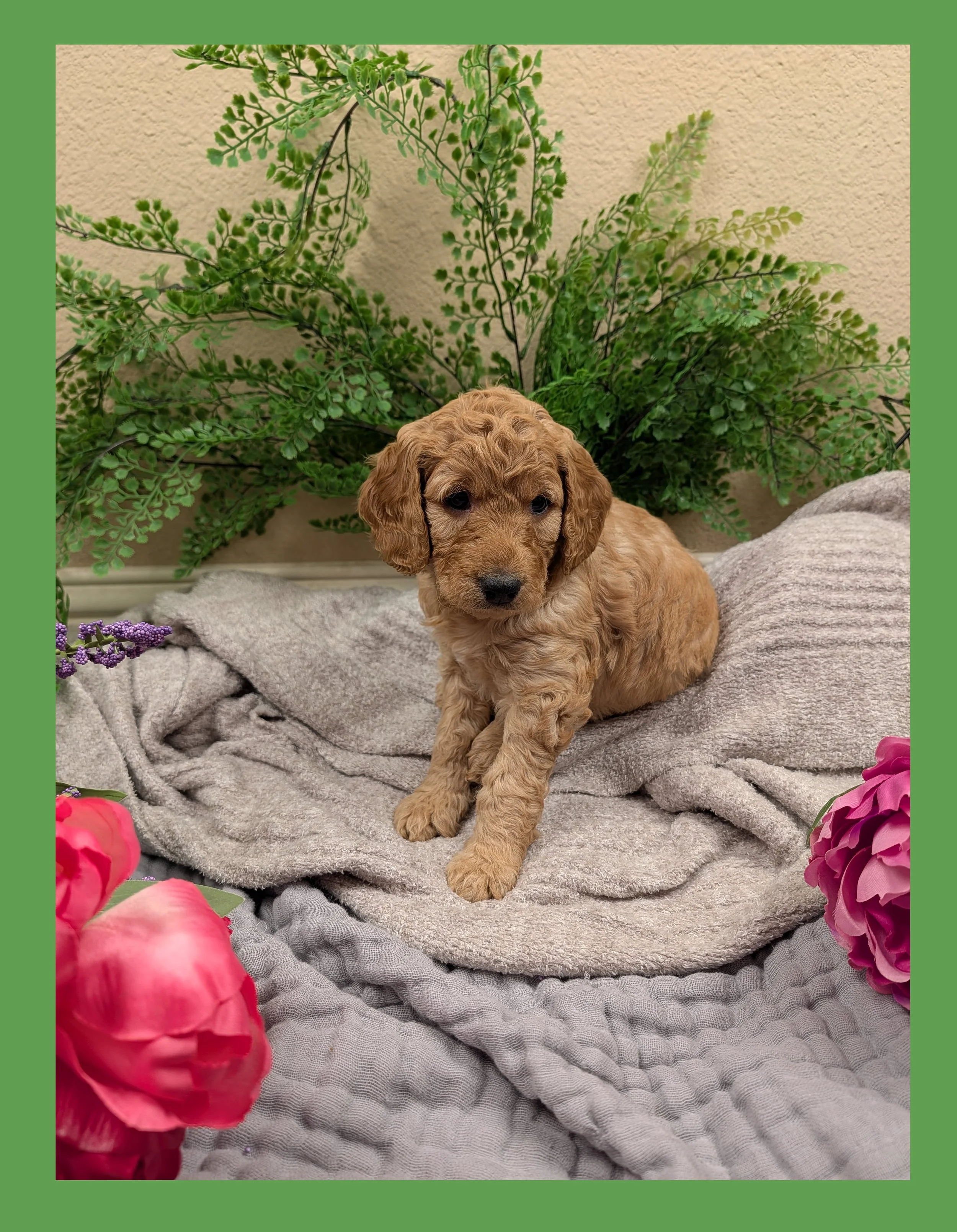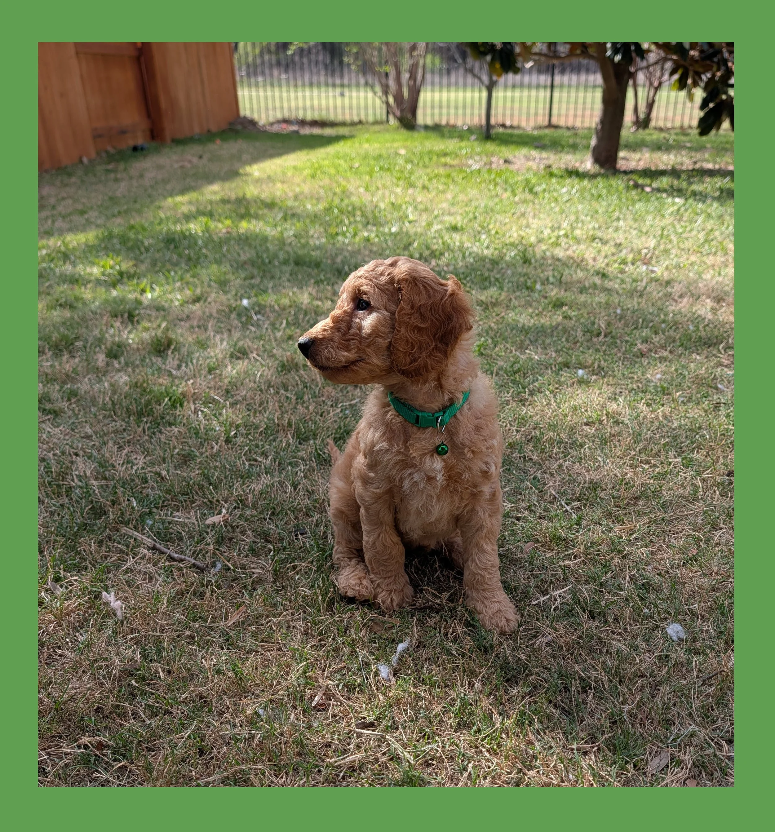 Intro: Meet Birch, the strong, silent type of the litter. Just as the birch tree stands tall and steady in the spring breeze, this handsome Medium Goldendoodle brings a grounding, peaceful energy to everyone he meets